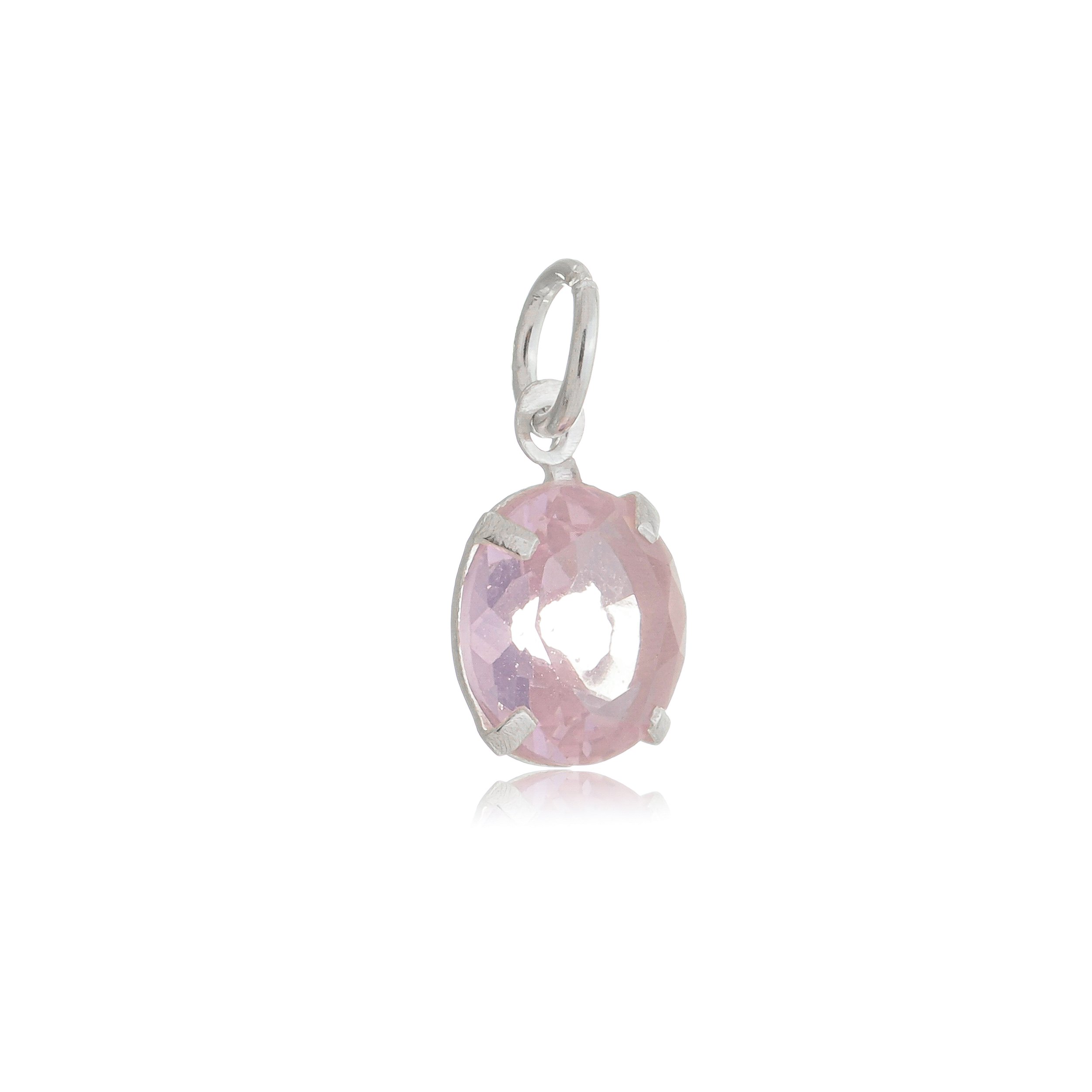 Pingente Redondo 8mm - Rosa - Prata 925 (Contém 5 Peças)