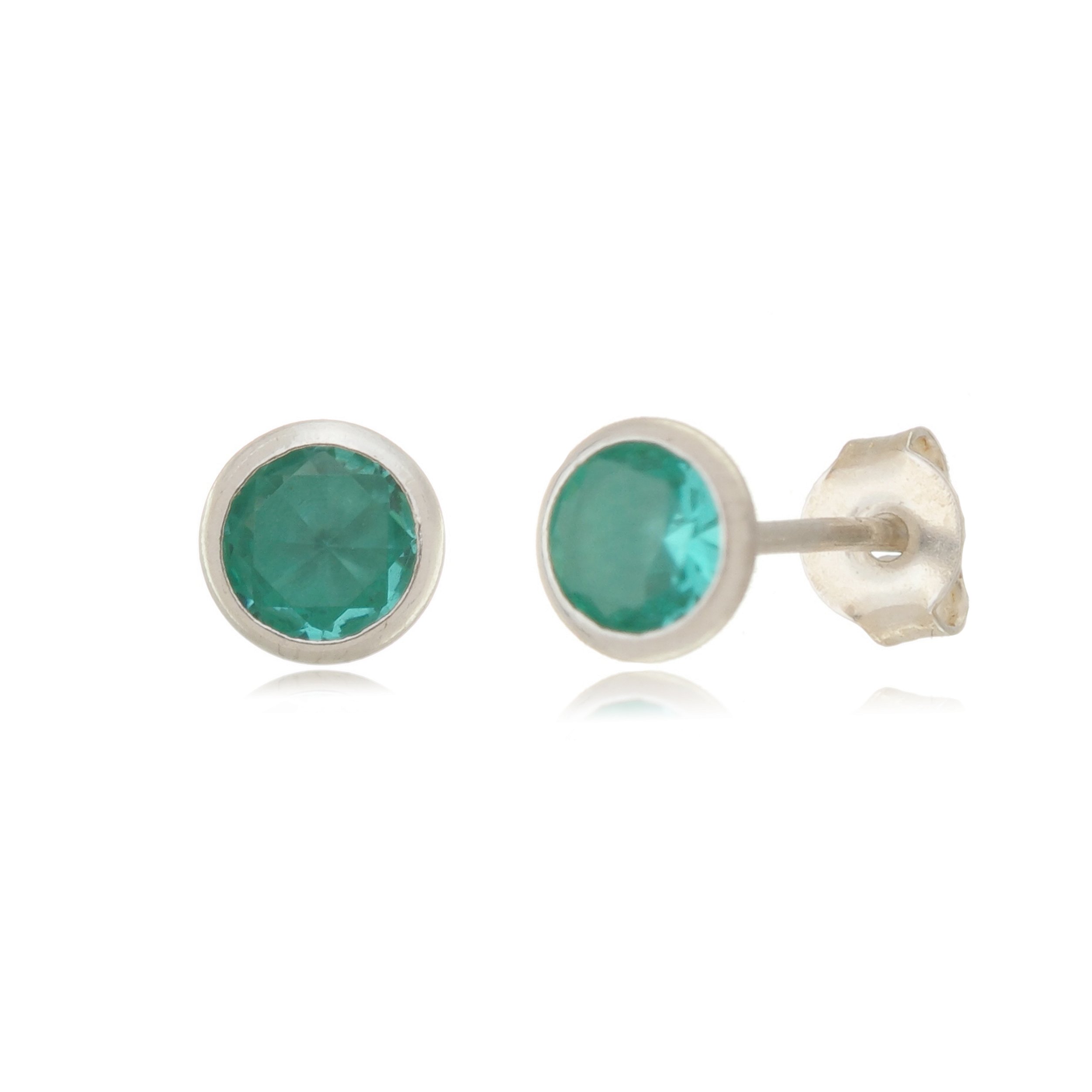 Cartela de Brincos Embutidos 5mm - Verde Mar - Prata 925 (Contém 12 Pares)