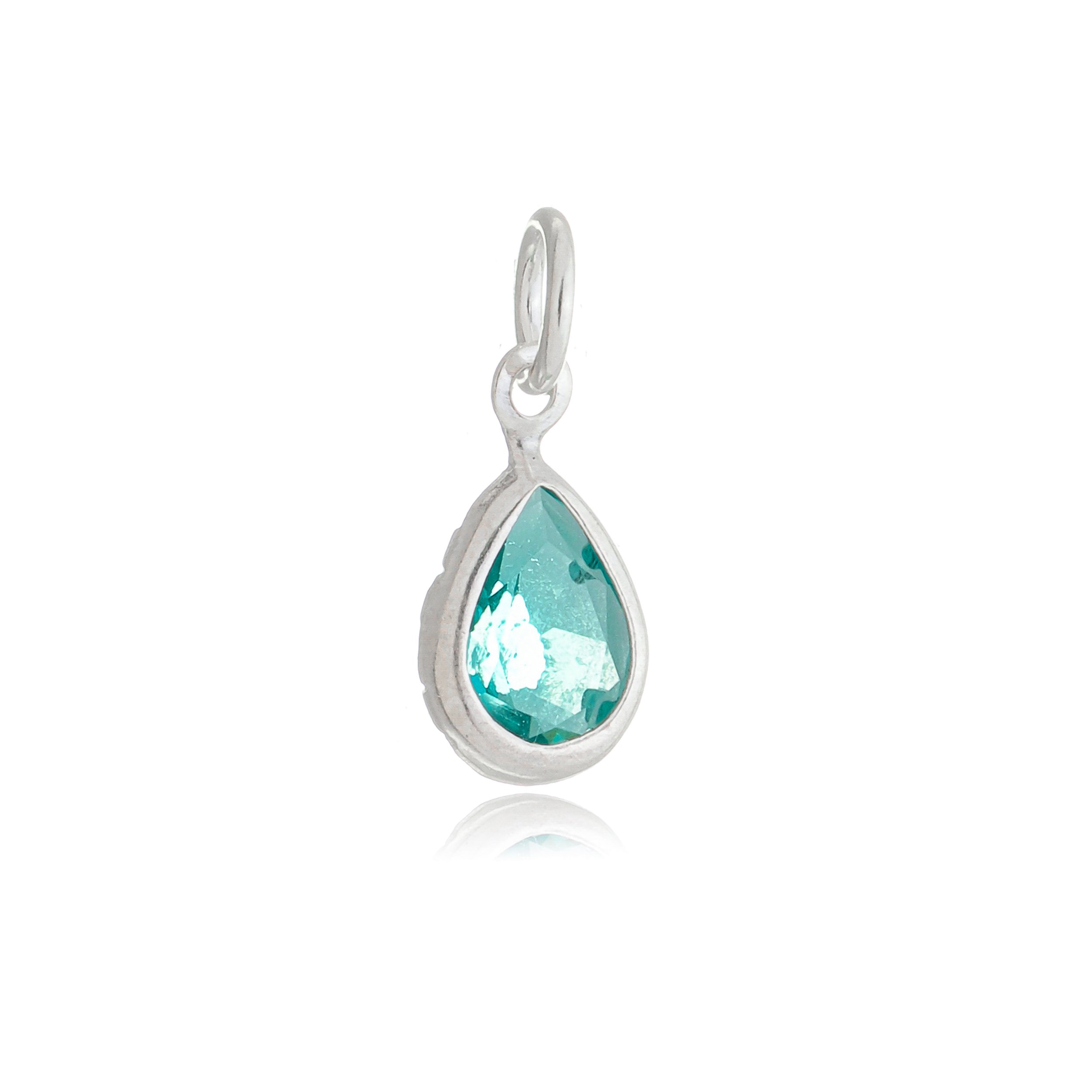 Pingente Embutido Gota 6x8 - Verde Mar - Prata 925 (Contém 5 Peças)