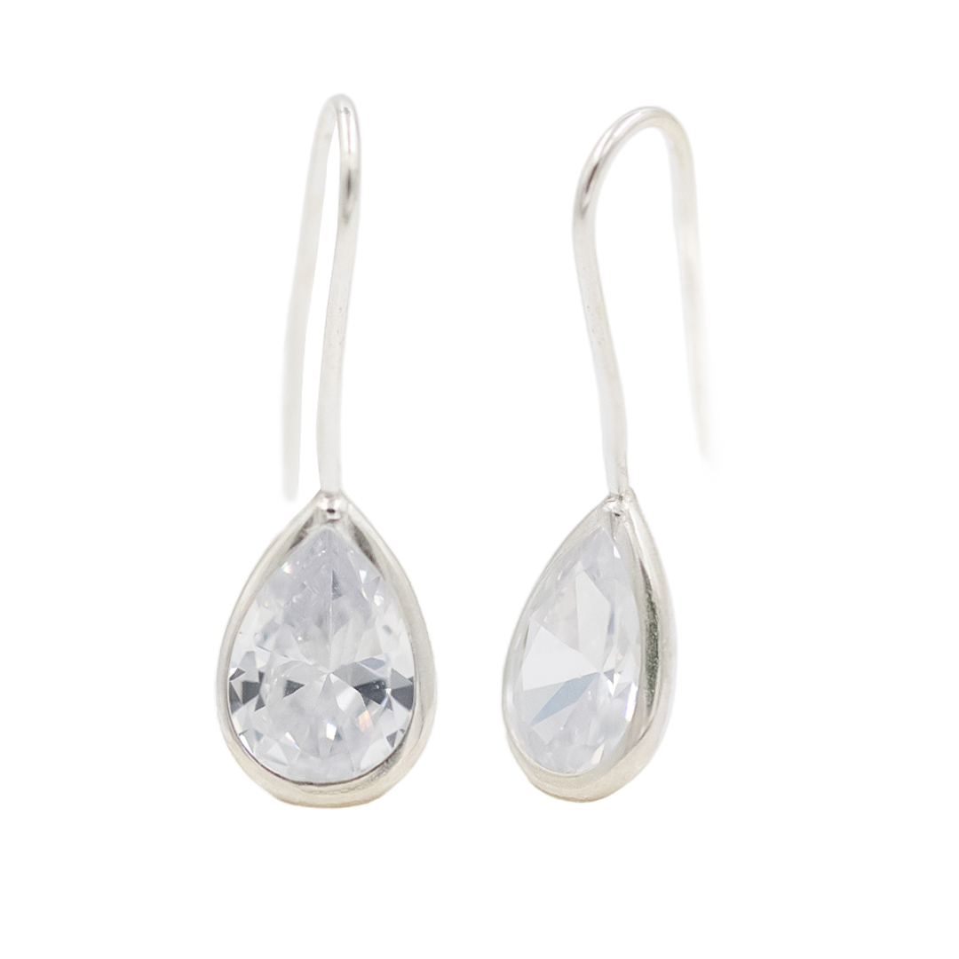 Brinco gancho com gota zircônia 6x12mm - Cristal - Prata 925