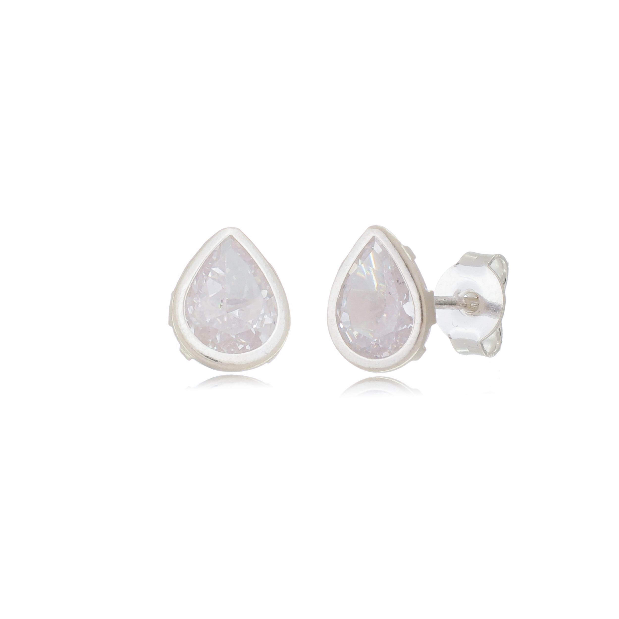 Brinco Gota Embutido 6x8 - Cristal - Prata 925 (Contém 12 Pares)