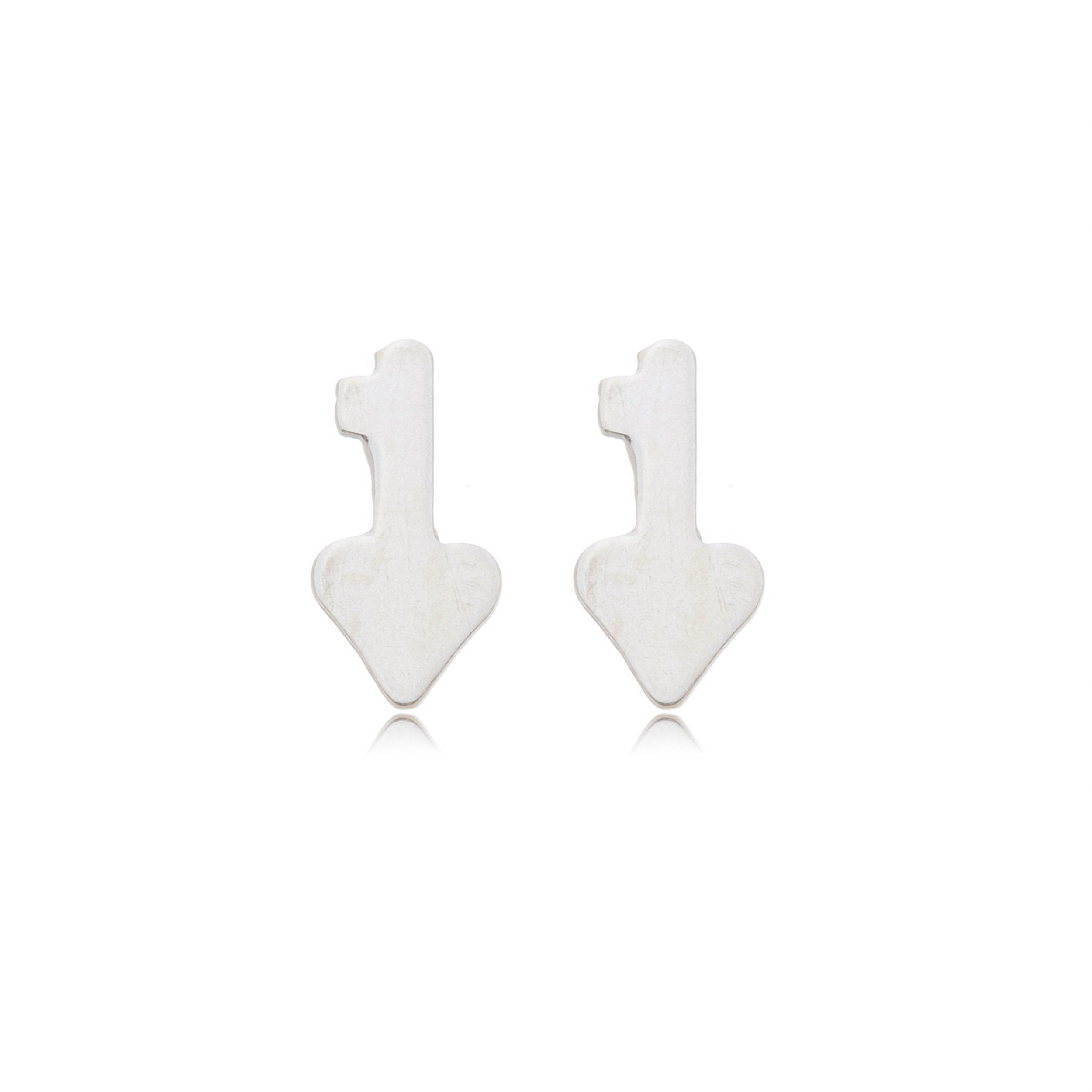 Brinco de Chaves com Ponta de Coração estampado em Prata 925. Garantia eterna de todas as peças.
