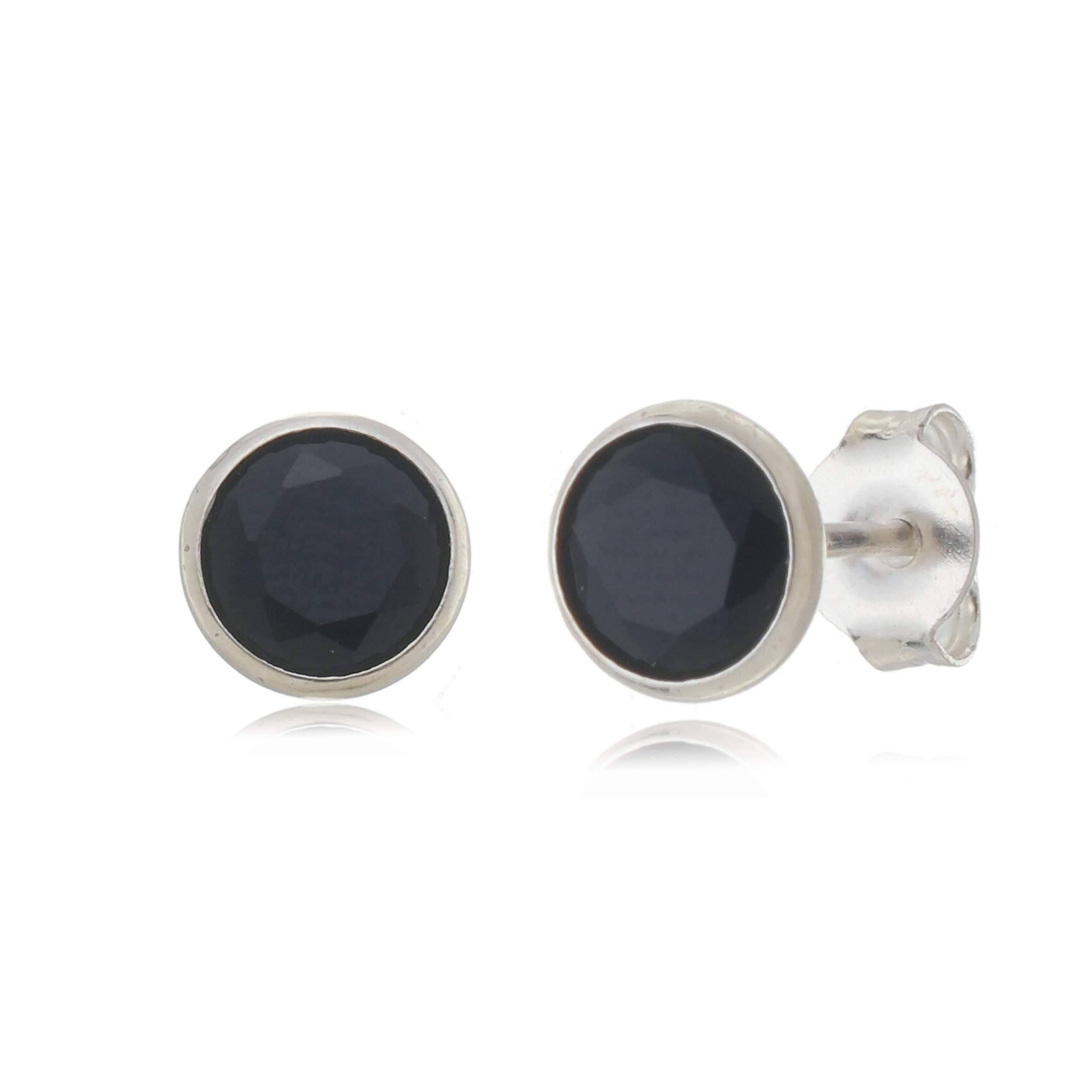 Cartela de Brincos Embutidos 8mm - Preto - Prata 925 (Contém 12 Pares)