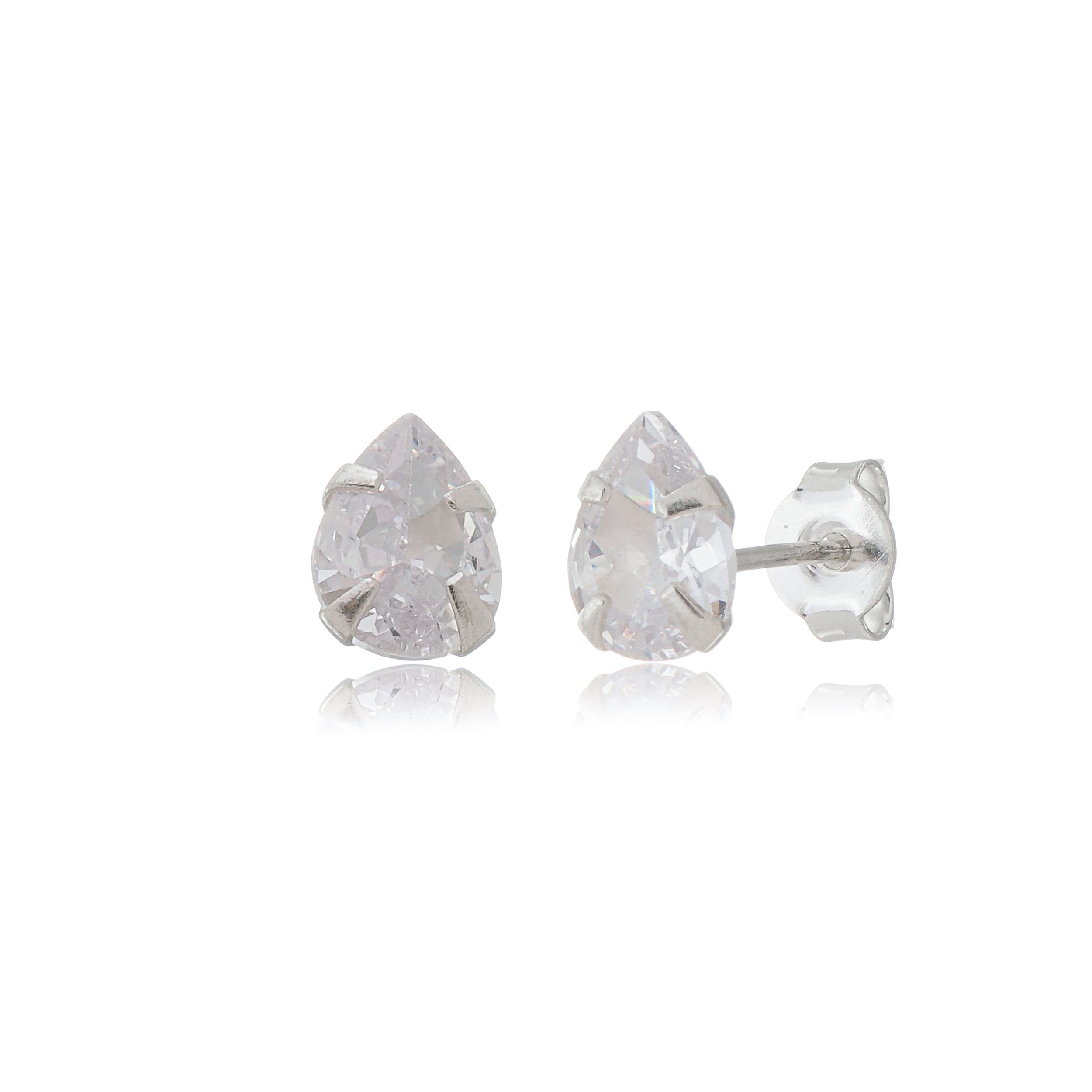 Brinco Gota Fixa - Cristal - Prata 925.