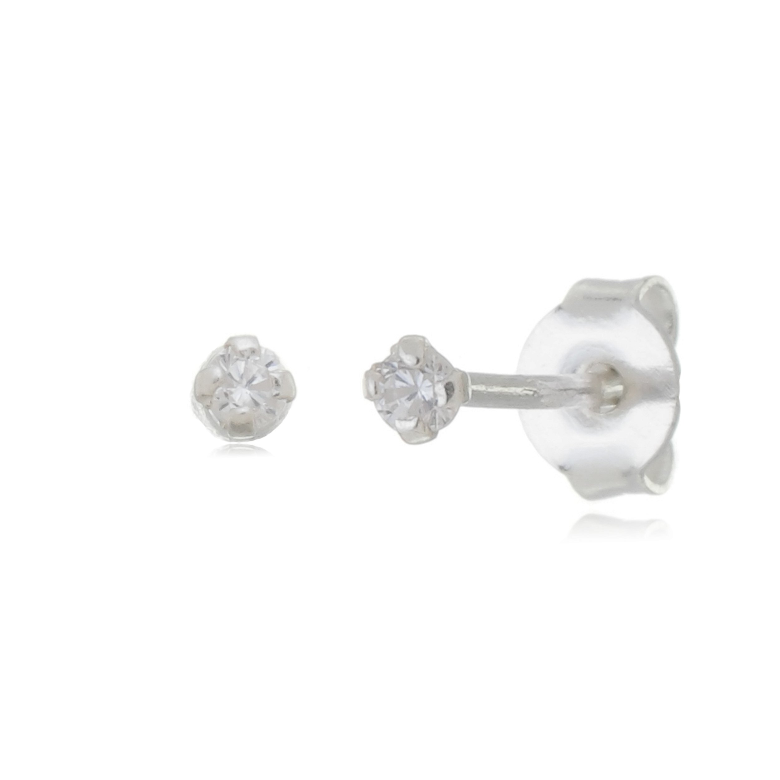 Cartela de brincos zircônia redondo 2mm - Cristal - Prata 925 (12 pares)