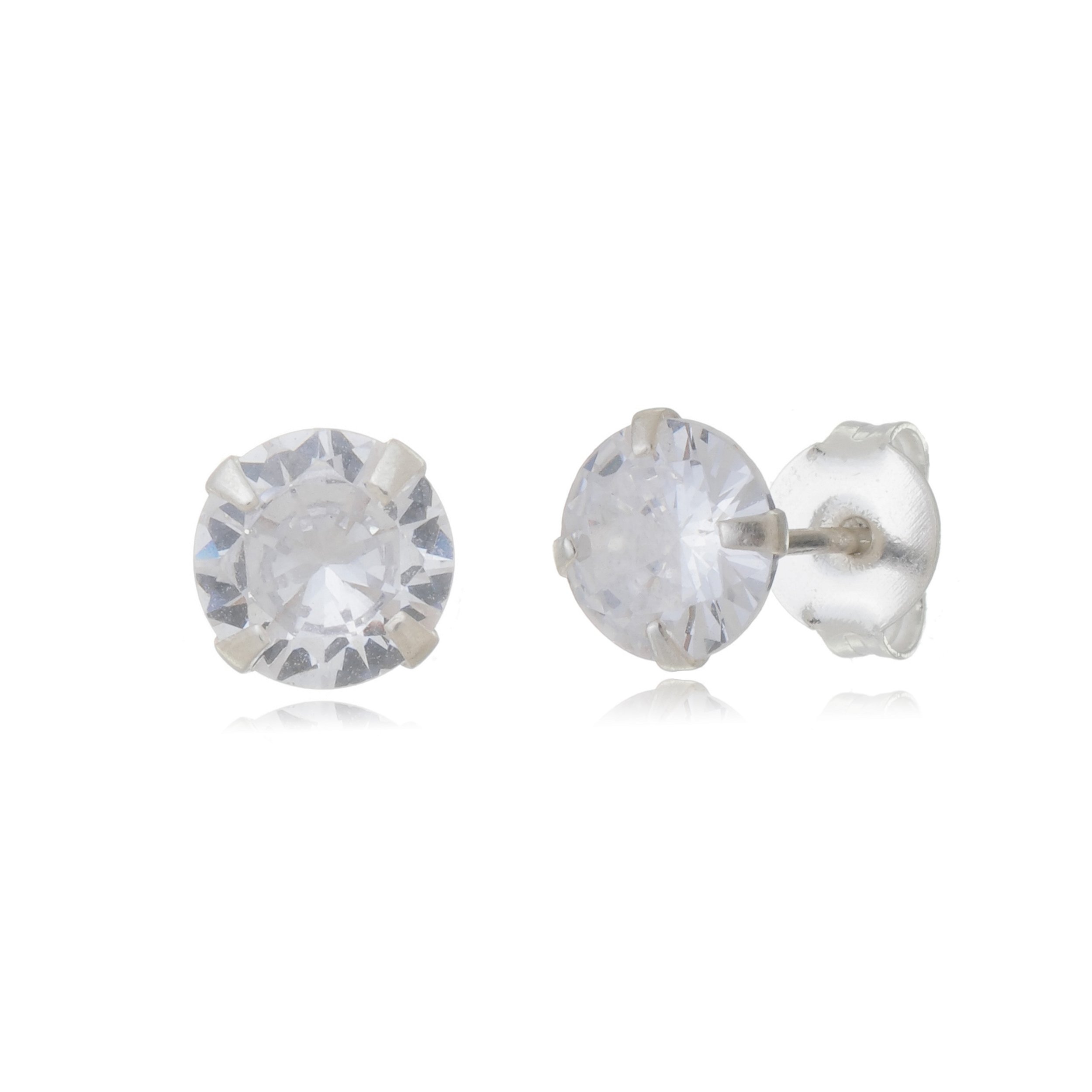 Cartela de brincos zircônia redondo 7mm - Cristal - Prata 925 (Contém 12 Pares)