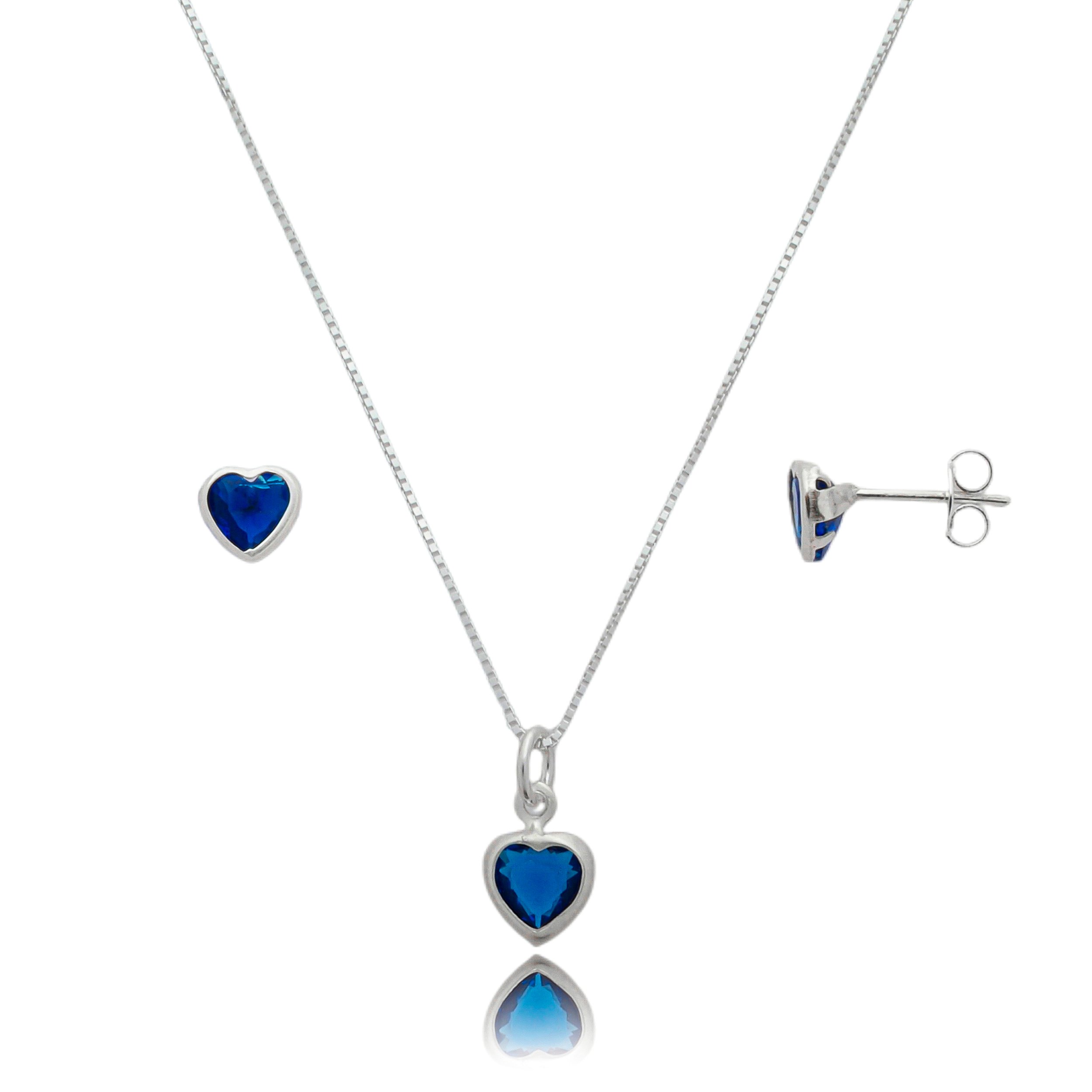 Conjunto Coração Embutido 6mm - Azul Royal - Prata 925
