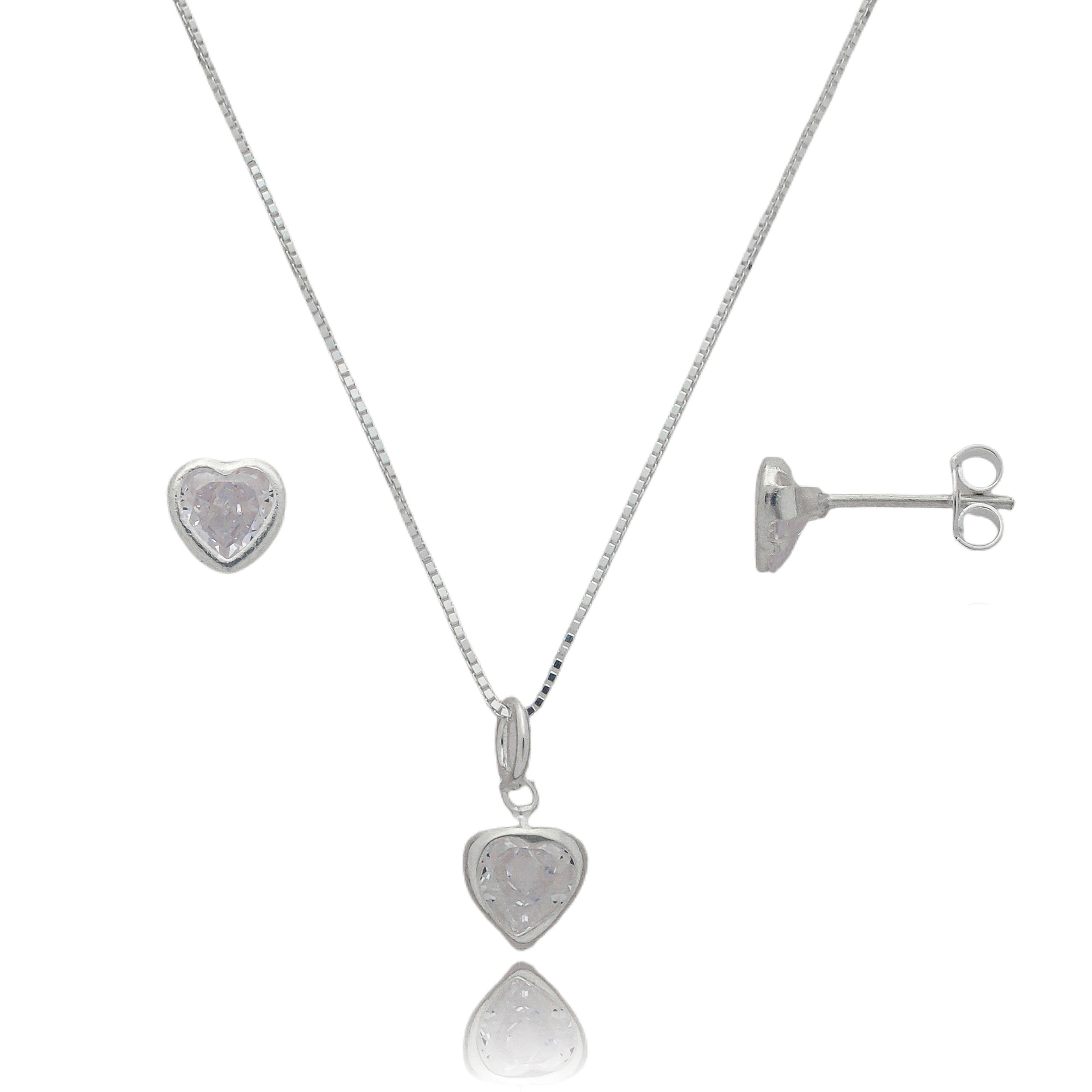 Conjunto Coração Embutido 6mm - Cristal - Prata 925