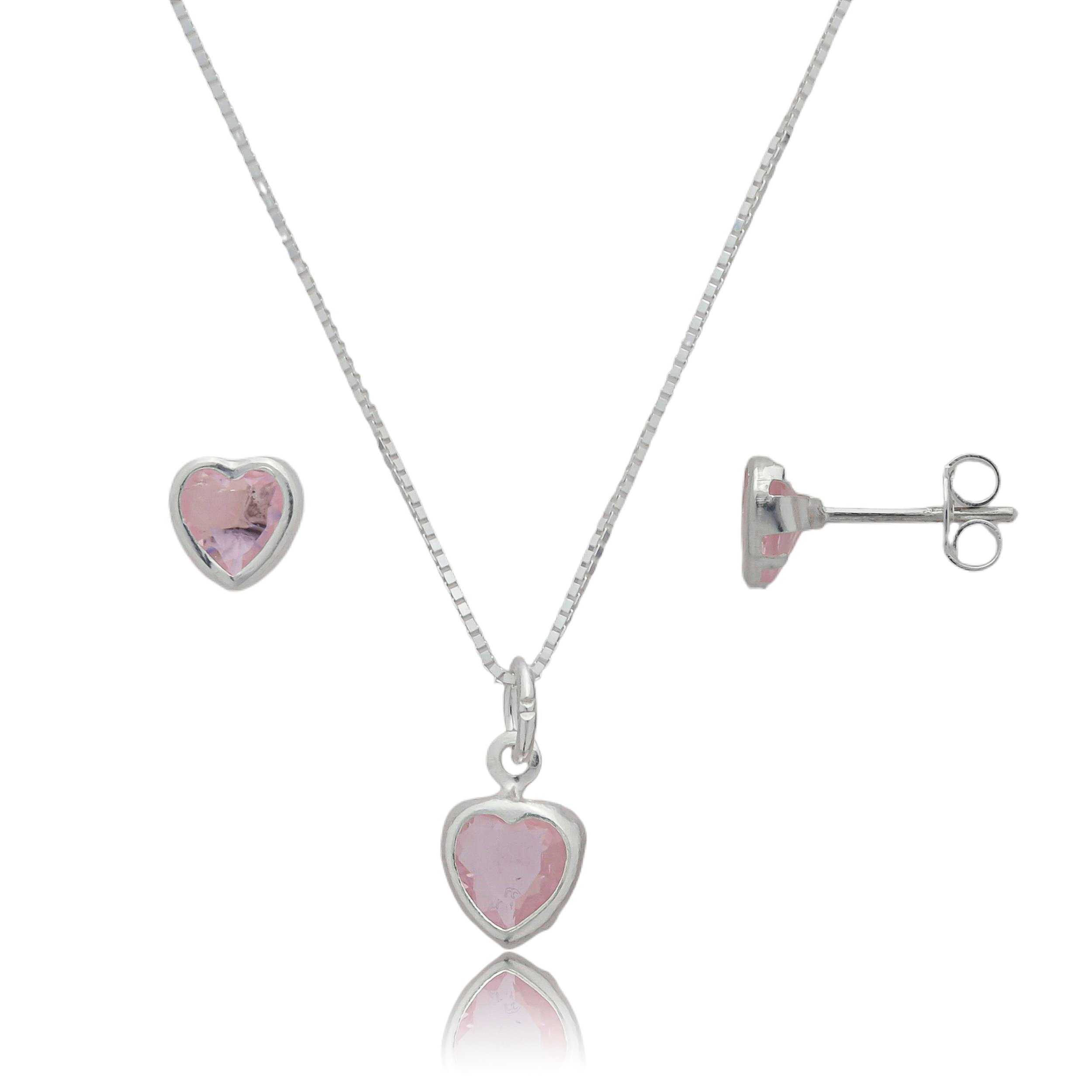 Conjunto Coração 6mm - Pingente + Brinco + Corrente.