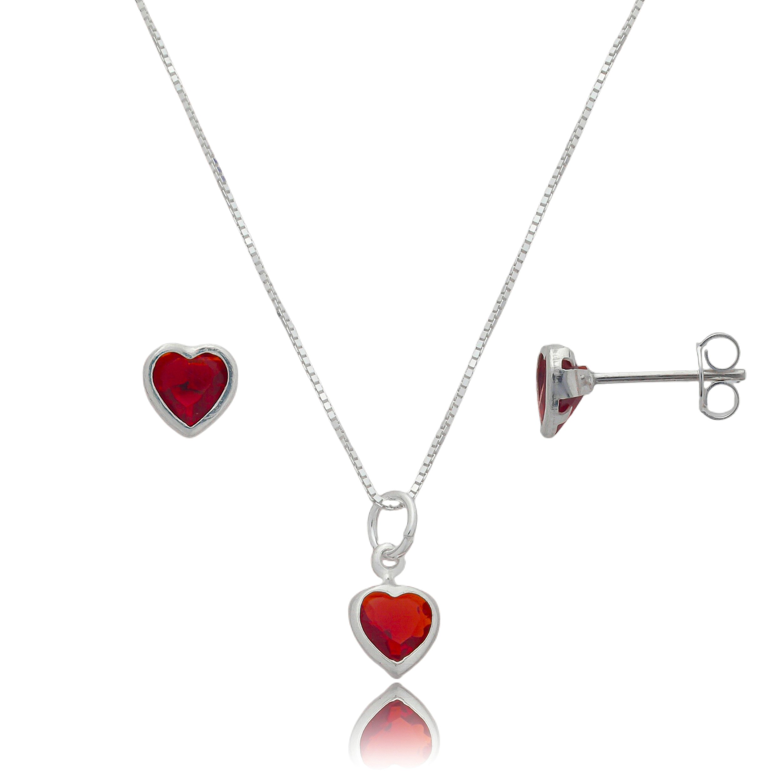 Conjunto Coração Embutido 6mm - Vermelho - Prata 925