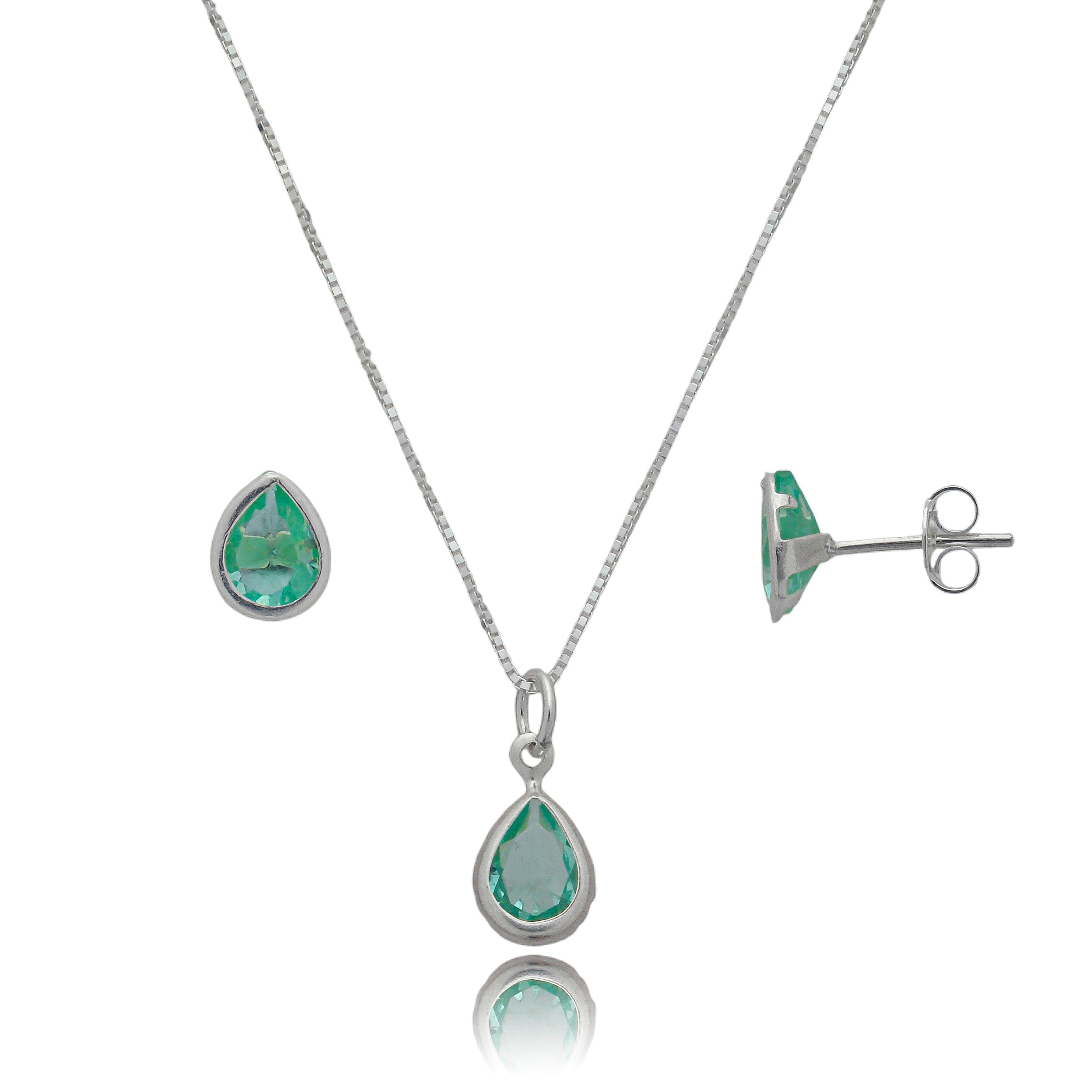 Conjunto Gota Embutido 6x8mm -Verde Paraíba- Prata 925