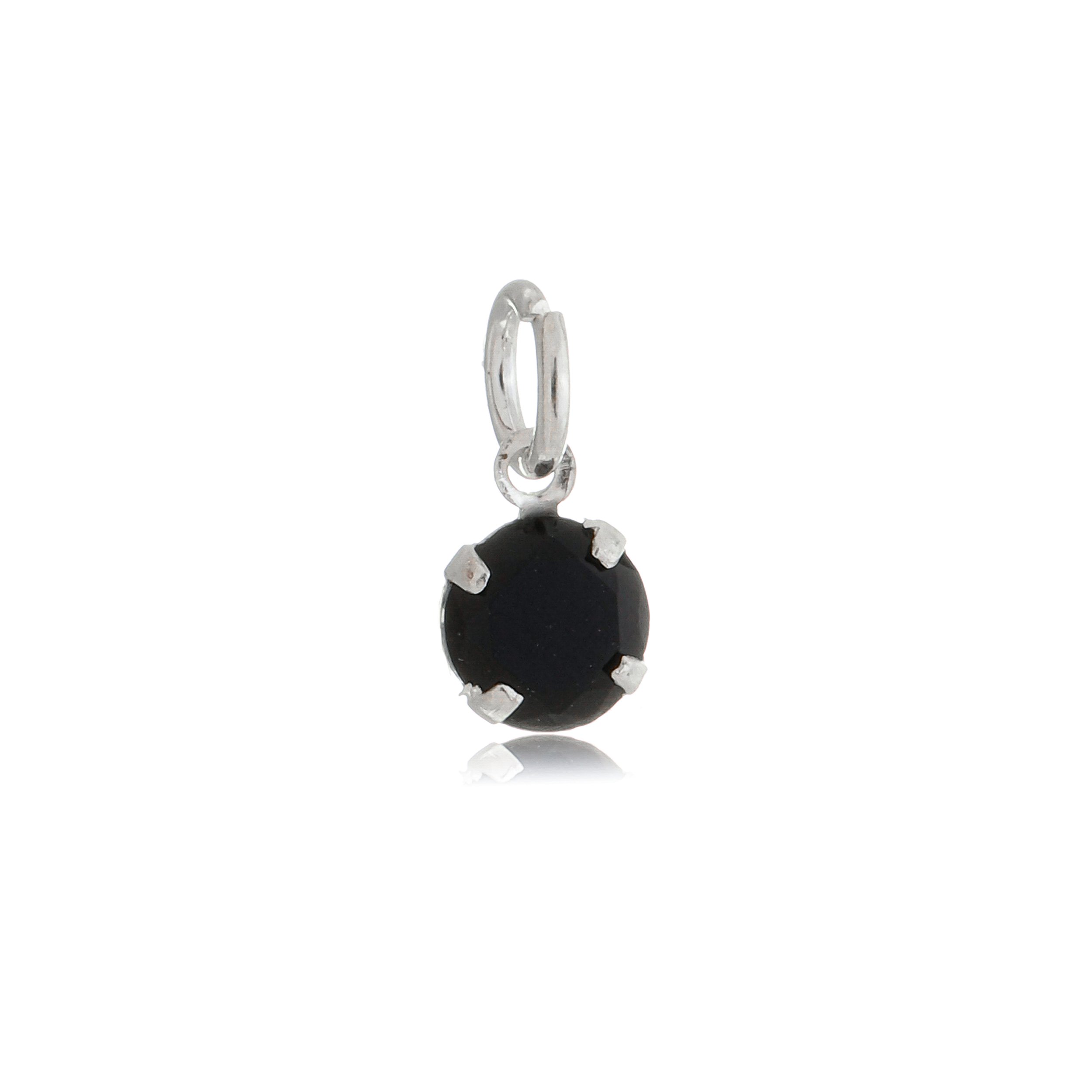 Pingente Redondo 5mm - Preto - Prata 925 (Contém 5 Peças)