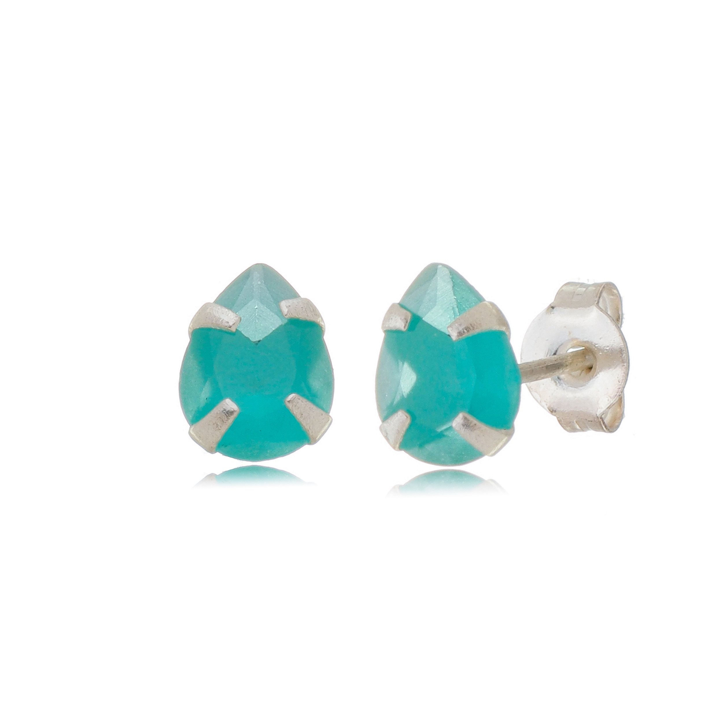 Cartela de brincos gota 6X8 - Verde Leitoso - Prata 925 (Contém 12 Pares)