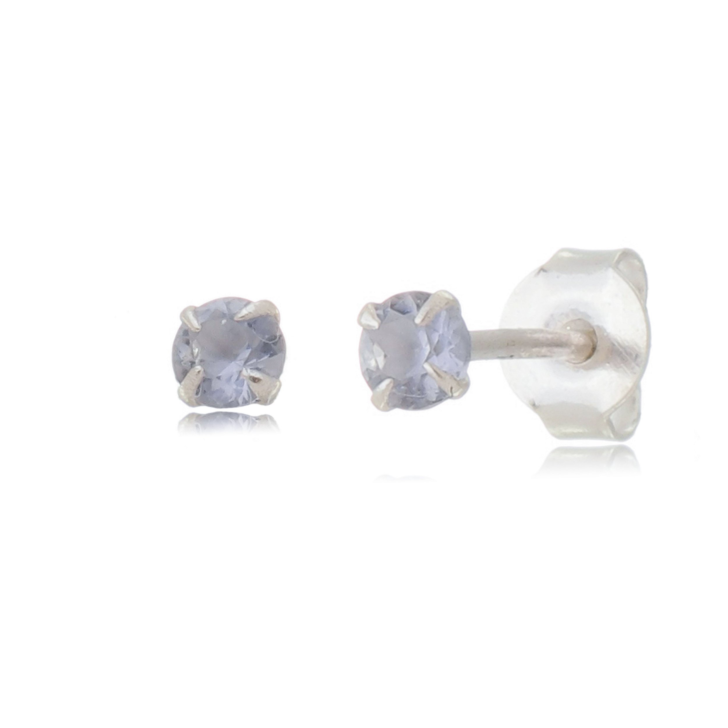 Cartela de brincos zircônia redondo 3mm - Lilás - Prata 925 (Contém 12 pares)