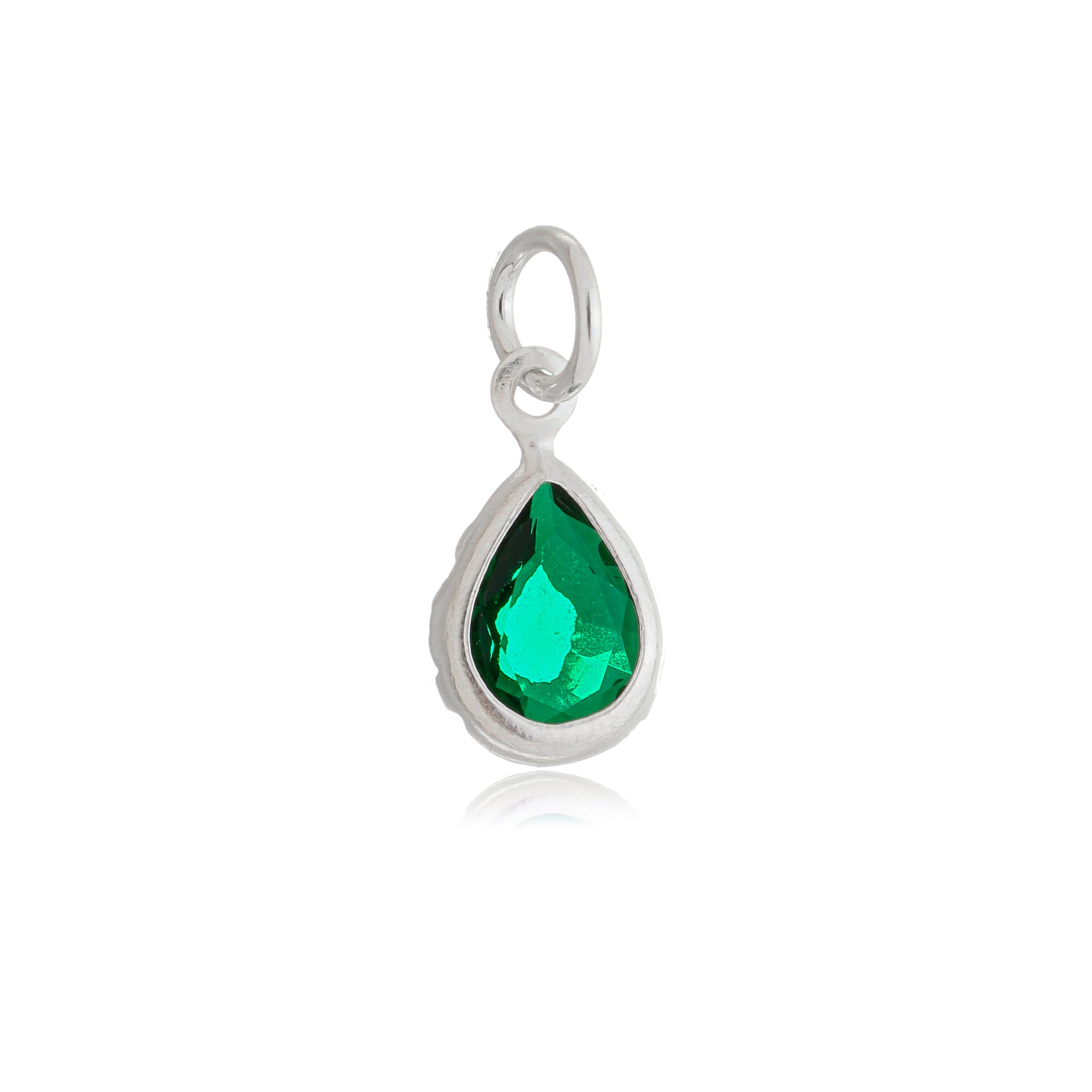 Pingente Embutido Gota 6x8 - Verde Esmeralda - Prata 925 (Contém 5 Peças)