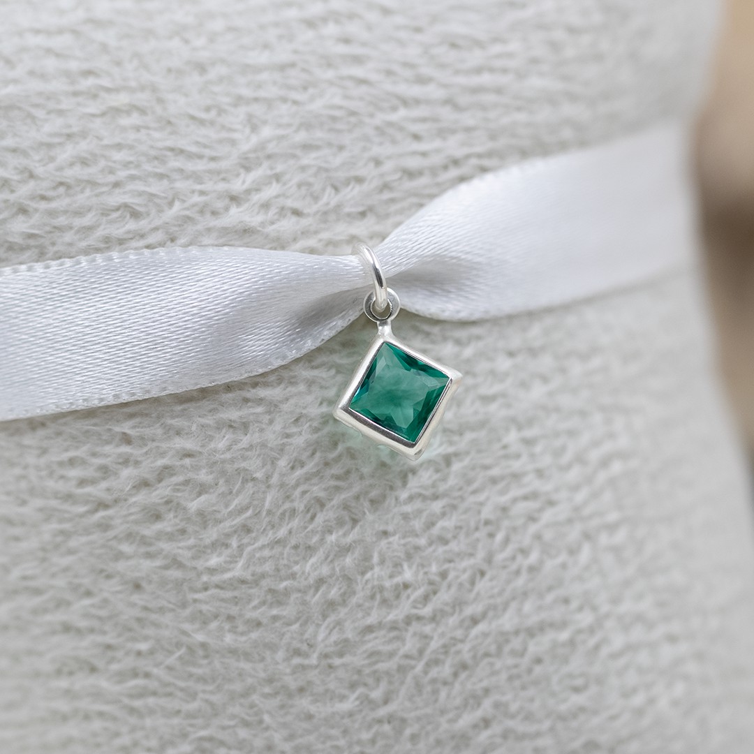 Pingente Quadrado Embutido 6x6 - Verde Mar - Prata 925 (Contém 5 Peças)
