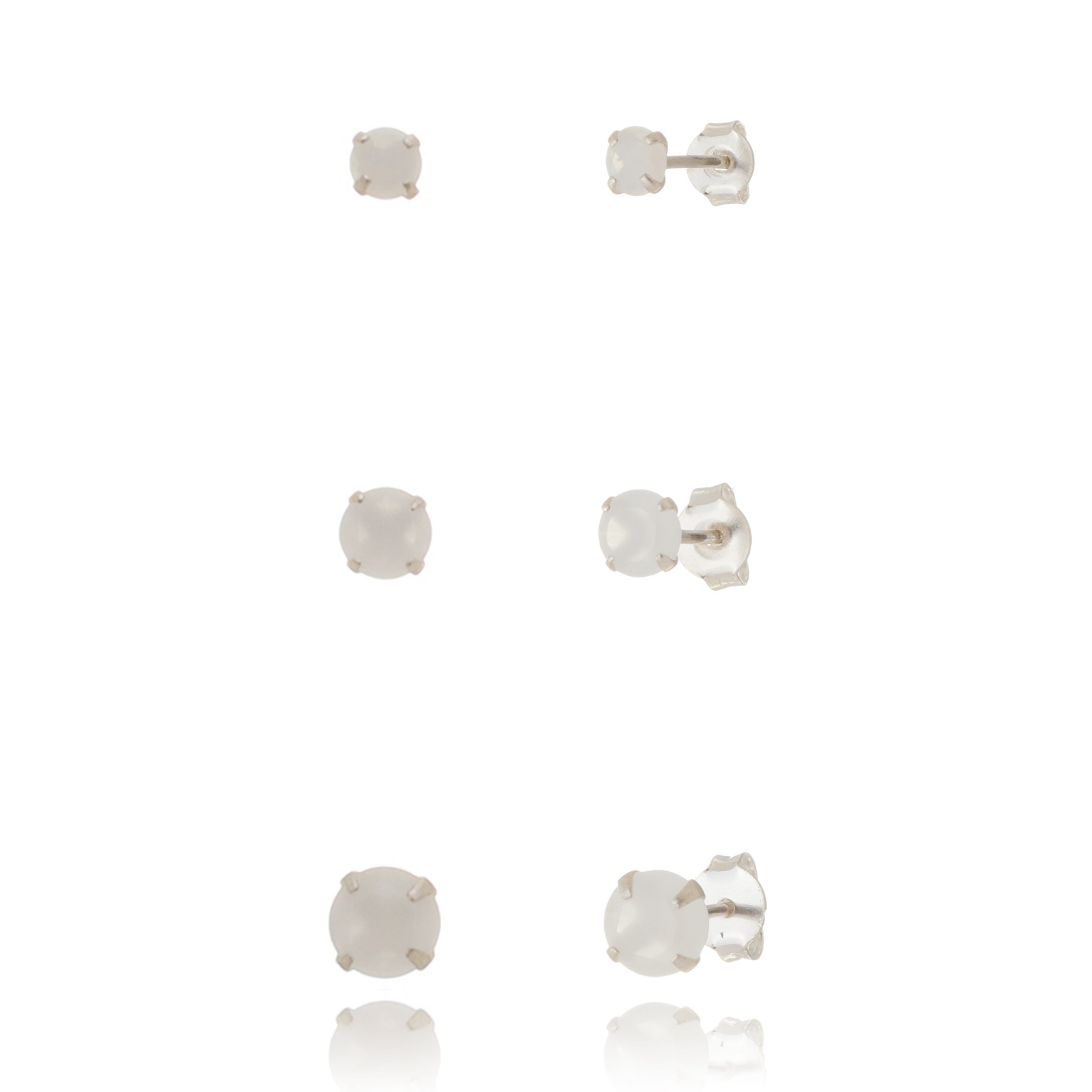 Trios de brincos zircônia 4/5/6mm - Branco Leitoso - Prata 925 (Contém 5 Trios)