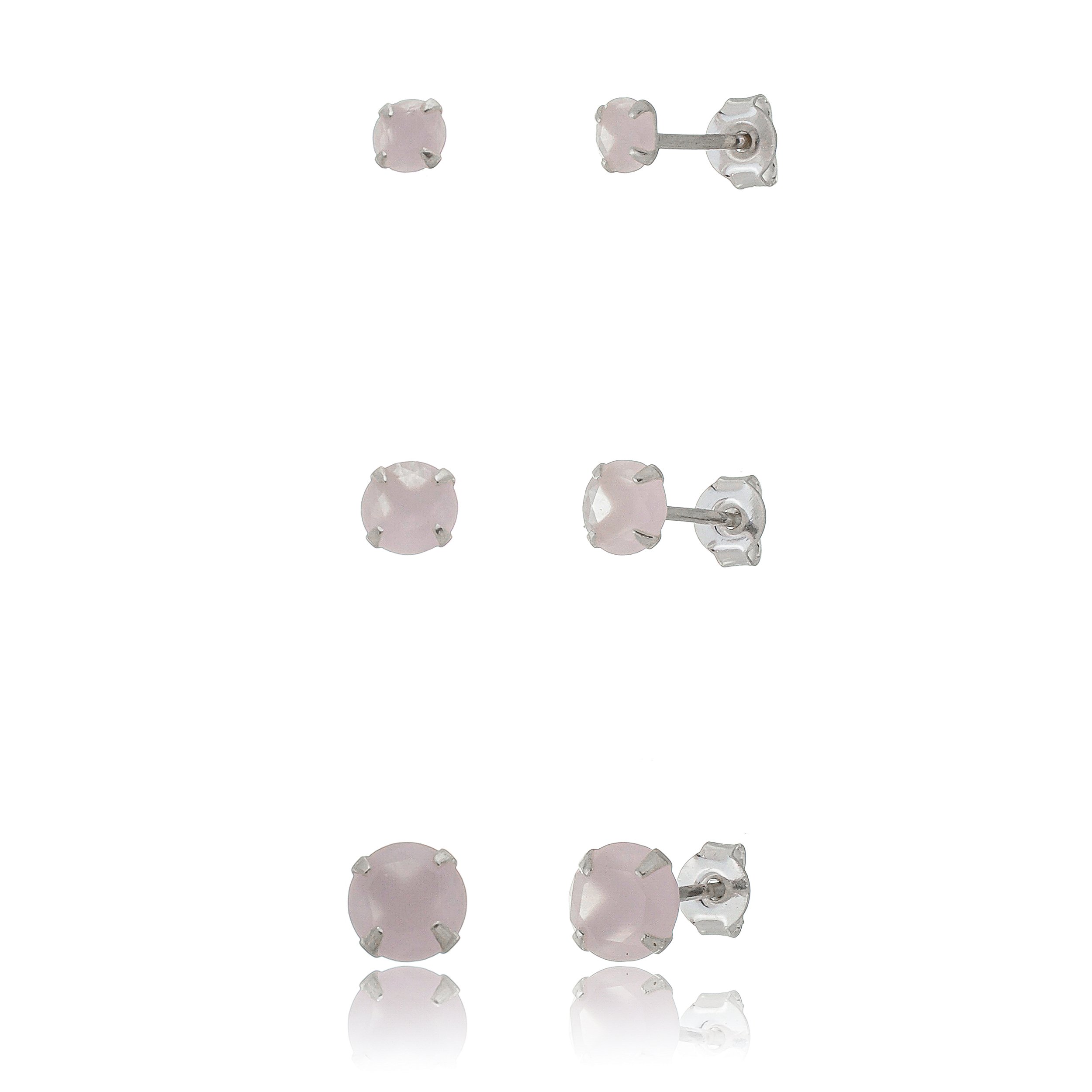 Trios de brincos zircônia 4/5/6mm - Rosa Leitoso - Prata 925 (Contém 5 Trios)