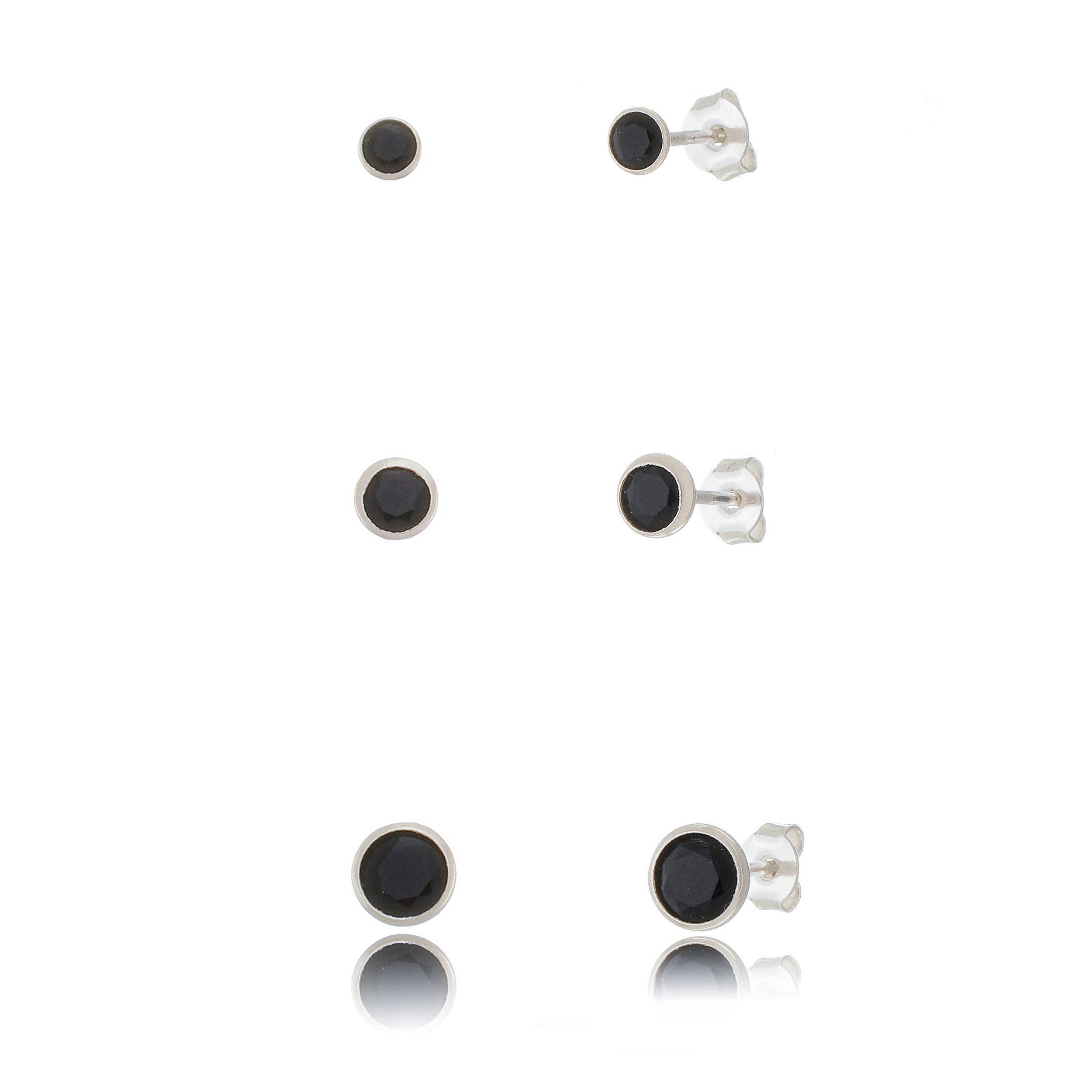 Trios de brincos zircônia Embutido 3/4/5mm - Preto - Prata 925 (Contém 5 Trios)